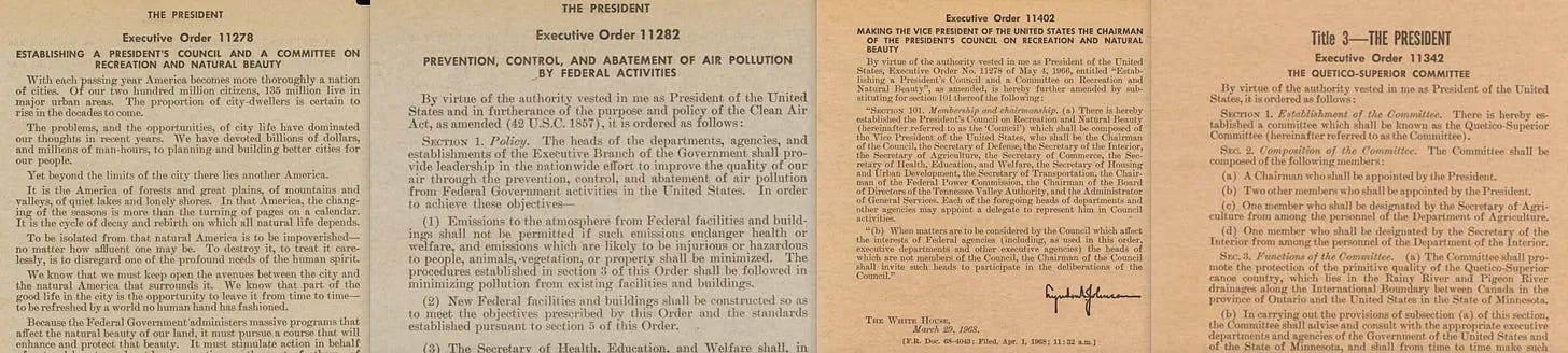 Ταυτόχρονα, ο Johnson άρχισε να εκδίδει ένα κύμα εκτελεστικών διαταγμάτων - πολλά από αυτά ευθυγραμμίζονταν με αυτή την ευρύτερη ατζέντα για το περιβάλλον και τη δημόσια υγεία. Και αυτό είναι που τα κάνει όλα αυτά τόσο περίεργα. Αυτό το επίπεδο εστίασης στον περιβαλλοντισμό εμφανίστηκε πολύ πριν από την ύπαρξη οποιασδήποτε υποτιθέμενης «κατασταλαγμένης επιστήμης» επί του θέματος.