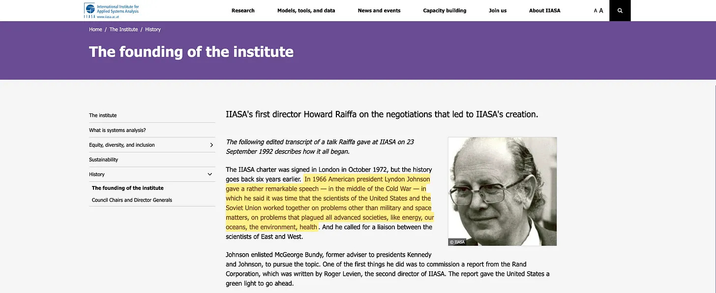Η συμφωνία ΗΠΑ-ΕΣΣΔ υπογράφηκε τον Μάιο του 1972. Μέχρι τον Δεκέμβριο, το Συμβούλιο εκδίδει ψήφισμα που ευθυγραμμίζεται με τον... τίτλο της IUCN (και επίσης ψήφισμα του ΟΗΕ). Και περίμεναν να κάνουν προβλέψεις 20-30 χρόνια νωρίτερα, λίγους μήνες μετά την έναρξη της IIASA;