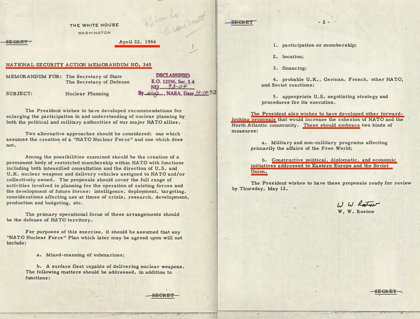 Ο πρόεδρος επιθυμεί επίσης να έχει αναπτύξει και άλλες μελλοντικές προτάσεις... Αυτές θα πρέπει να περιλαμβάνουν... Εποικοδομητικές πολιτικές, διπλωματικές και οικονομικές πρωτοβουλίες προς την Ανατολική Ευρώπη και τη Σοβιετική Ένωση.