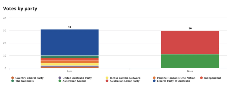 Η ψηφοφορία κερδήθηκε με 31 προς 30 ψήφους, με μόνο το αριστερό Εργατικό Κόμμα και τους Πράσινους να αντιτίθενται στην πρόταση (δείτε την πλήρη ανάλυση ΕΔΩ).