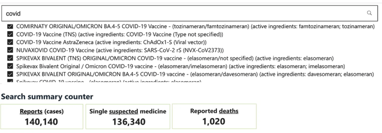 Ενώ ο Οργανισμός Θεραπευτικών Προϊόντων ("TGA") αναγνωρίζει επίσημα μόνο 14 θανάτους που σχετίζονται με τα εμβόλια covid, υπήρχαν πάνω από 1.020 αναφερόμενοι θάνατοι και πάνω από 140.000 τραυματισμοί που καταγράφηκαν στη βάση δεδομένων DAEN, τη βάση δεδομένων παρακολούθησης της ασφάλειας της Αυστραλίας, στις 12 Μαρτίου 2024.