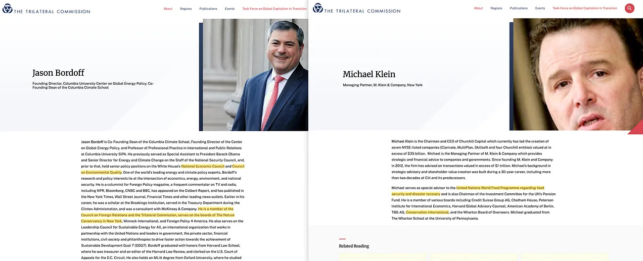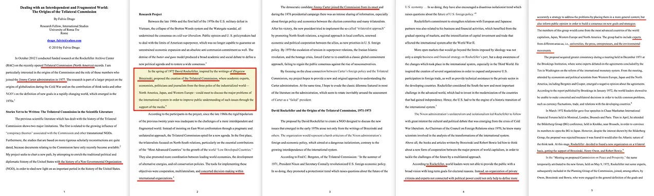 Οι συν-συγγραφείς του -συμπεριλαμβανομένου του αγαπημένου σούπερ κακού όλων, του Klaus Schwab- παρουσίαζαν μια σειρά από μέλη της Τριμερούς Επιτροπής, συμπεριλαμβανομένου ακόμη και του Jimmy Carter, οι οποίοι εργάζονταν για έναν κοινό στόχο: