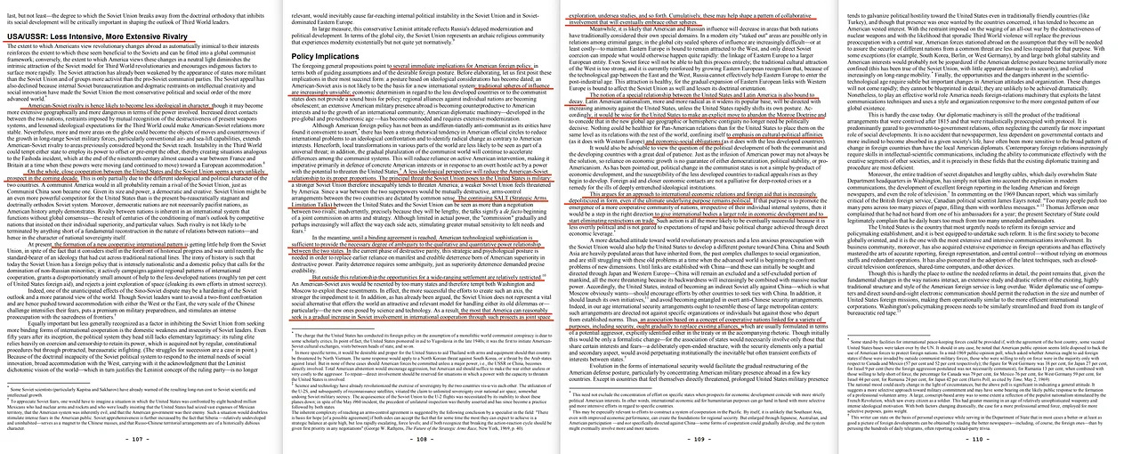 Μακροπρόθεσμα -και η προηγούμενη ανάλυσή μας δείχνει ότι θα είναι μακροπρόθεσμη- η σοβιετική ανταπόκριση θα μπορούσε να υποκινηθεί μέσω του σκόπιμου ανοίγματος των ευρωπαϊκών συνεργατικών εγχειρημάτων προς την Ανατολή και μέσω της δημιουργίας νέων φορέων Ανατολής-Δύσης, σχεδιασμένων αρχικά μόνο για την προώθηση του διαλόγου, την ανταλλαγή πληροφοριών και την ενθάρρυνση ενός συνεργατικού ήθους.