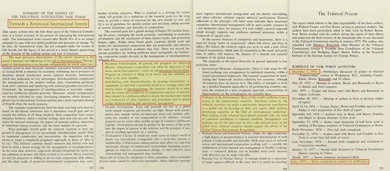 Έχουμε επίσης μια ομάδα εργασίας της Τριμερούς Διαδικασίας που ξεκίνησε το 1974, με έμφαση στον περιβαλλοντισμό, την αλληλεξάρτηση, την ευέλικτη συμμετοχή, την εξελικτική αλλαγή και -φυσικά- τις διεθνείς νομισματικές ρυθμίσεις...