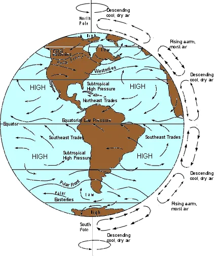 Τέλος, η αδράνεια, το ιξώδες και οι διαφορές πίεσης και θερμοκρασίας αποδίδονται στην ικανότητα της Γης να παρασύρει την ατμόσφαιρα μαζί της καθώς περιστρέφεται.