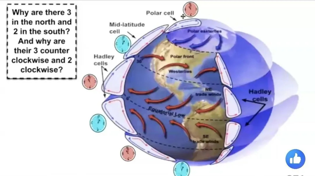 Και όμως, οι άνεμοι πνέουν παντού σε χαοτικά μοτίβα, παρά την υποτιθέμενη περιστροφή της ατμόσφαιρας με ταχύτητα 1000 μιλίων/ώρα, από τη Δύση προς την Ανατολή, που συνδέεται με μια περιστρεφόμενη Γη. Αυτό σημαίνει ότι δισεκατομμύρια τόνοι ατμόσφαιρας ρέουν προς μία κατεύθυνση. Μιλάμε για αδράνεια! Και όμως, μικροσκοπικά αεράκια περιφέρονται ανεπηρέαστα;