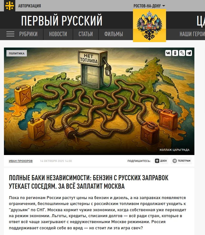 Είναι γνωστό ότι η Μόσχα έχει ηθικό καθήκον να παρέχει επιδοτούμενη ενέργεια σε χώρες ανοιχτά εχθρικές προς τη Ρωσία, οπότε γιατί διαμαρτύρονται οι Ρώσοι που υποφέρουν από έλλειψη βενζίνης;