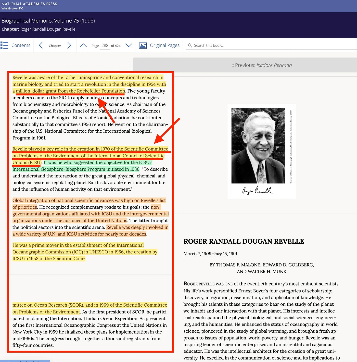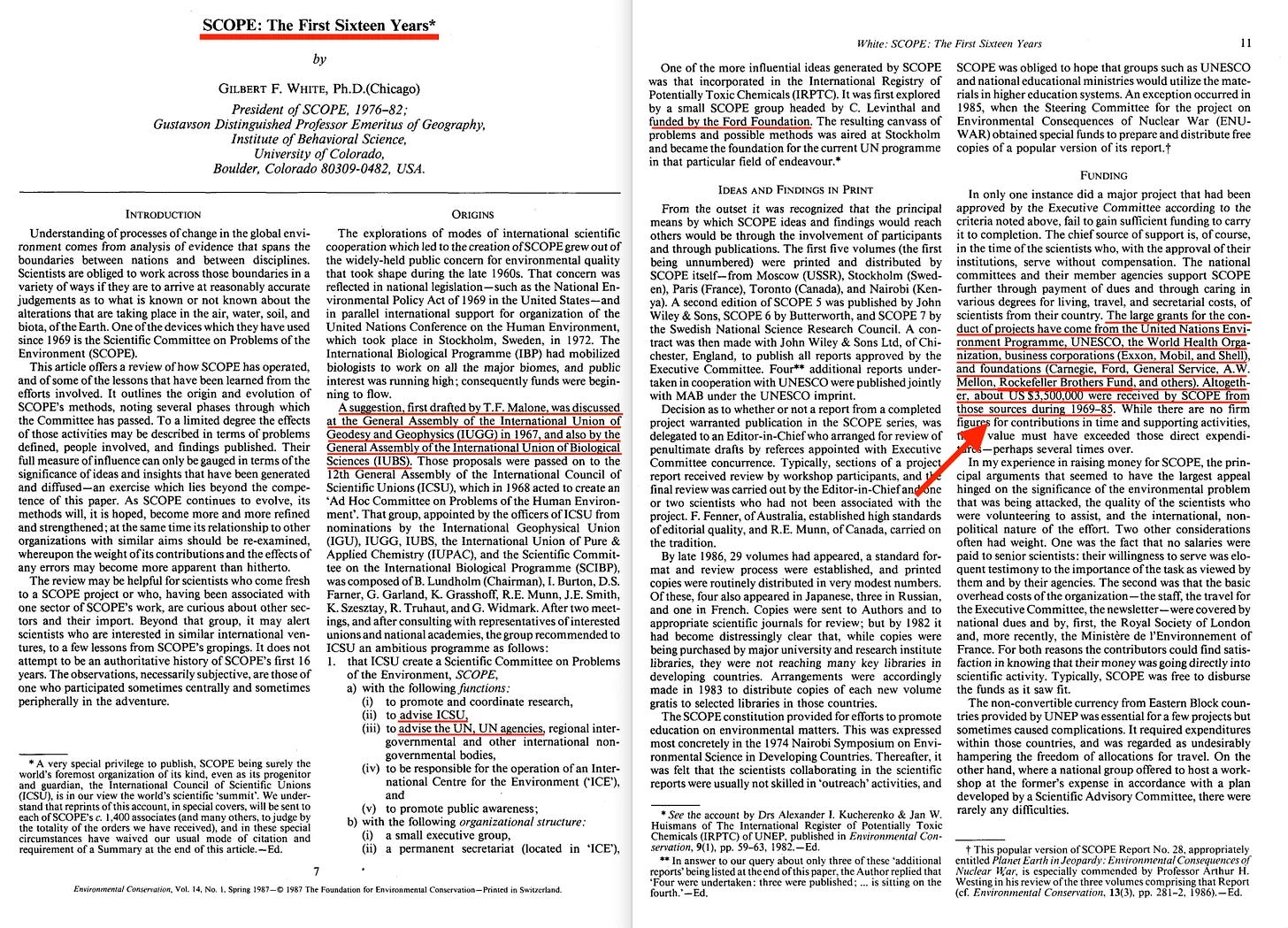 ... και το 1969, η ICSU εγκαινίασε την Επιστημονική Επιτροπή για τα Προβλήματα του Περιβάλλοντος (SCOPE) που σχετιζόταν με τον Viktor Kovda... και έλαβε μεγάλες επιχορηγήσεις [19], ευγενική χορηγία... ναι, ιδρυμάτων, συμπεριλαμβανομένου του Rockefeller.