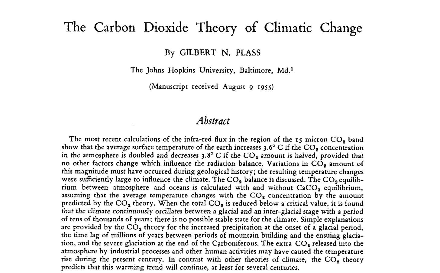 Ο Gilbert N. Plass το 1955 συνέταξε τη θεωρία του για την... κινδυνολογία σχετικά με το διοξείδιο του άνθρακα [14]...