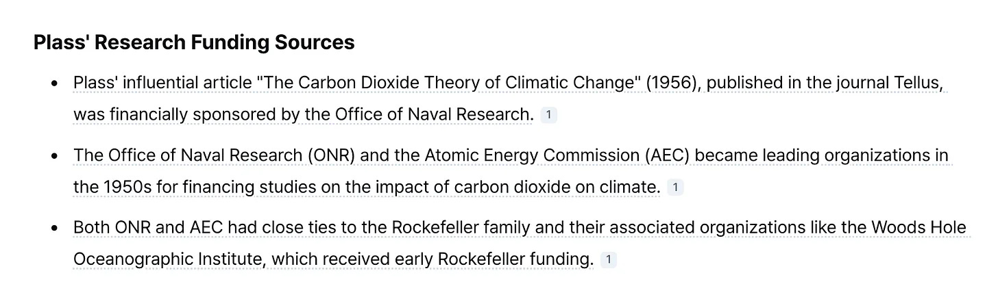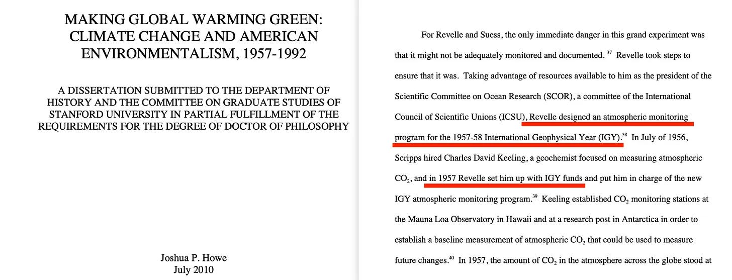 Και ο Keeling; Λοιπόν, ας πούμε ότι το πείραμά του IGY του 1957 σχεδιάστηκε από τον Roger Revelle [16] , ο οποίος έλαβε επιχορήγηση 1 εκατ. δολαρίων το 1954 από... Rockefeller [17]. Ένα αστρονομικό ποσό εκείνη την εποχή.