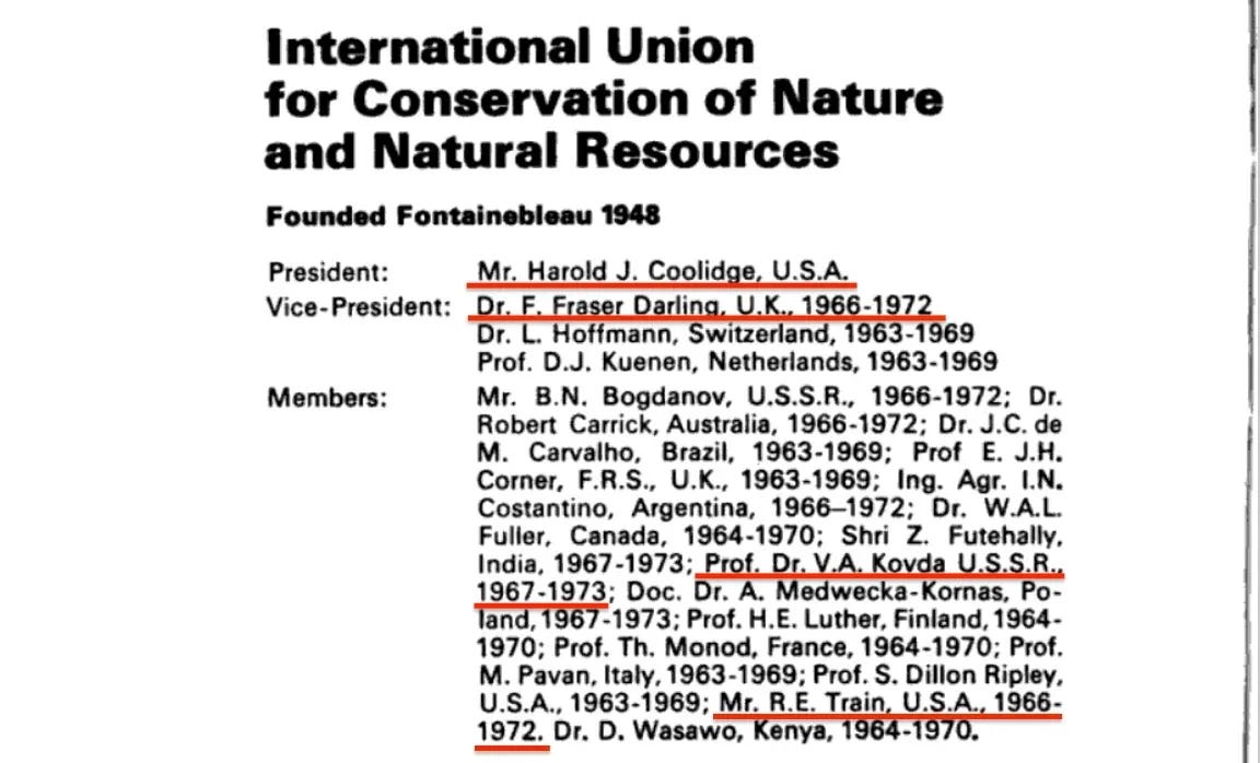 Harold Coolidge; Ήταν πρόεδρος της IUCN [9] το 1968 - με μέλος τον Russell Train.