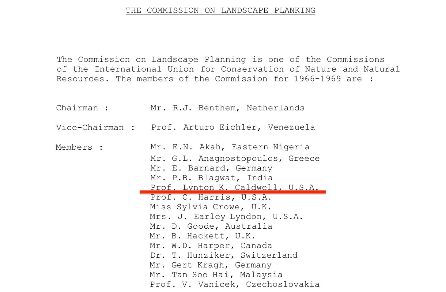 Και ο Lynton... λοιπόν, το 1968 ήταν επίσης μέλος της Επιτροπής της IUCN για το Σχεδιασμό του Τοπίου [21] , γεγονός που φαίνεται αρκετά ασυνήθιστη σύγκρουση συμφερόντων, δεδομένης της εμπλοκής του στη σύνταξη της NEPA ρητά την ίδια εποχή.