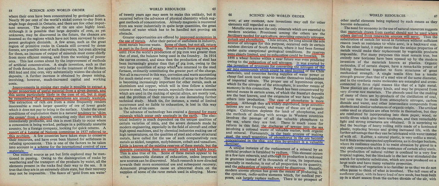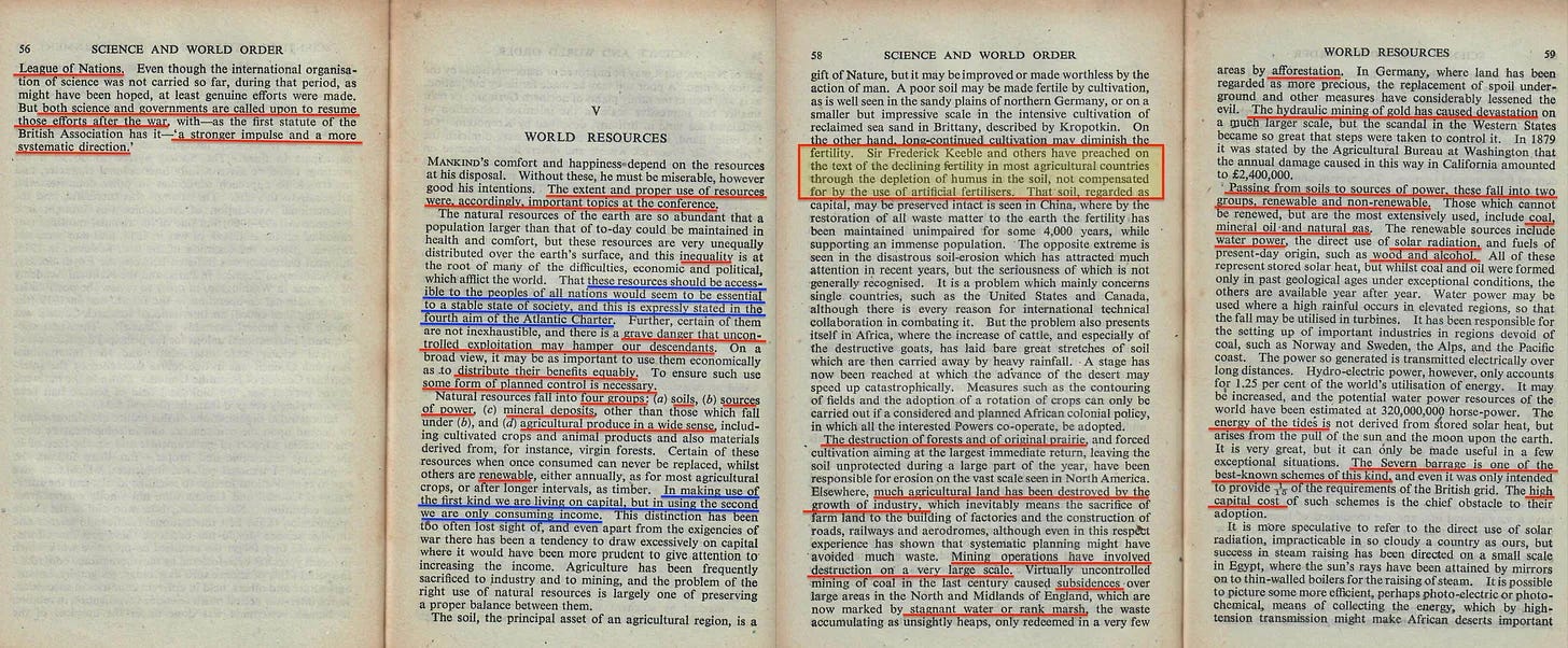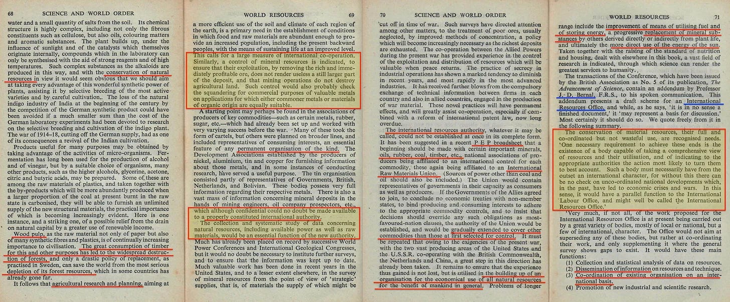 Οι επόμενες σελίδες ασχολούνται με το σχεδιασμό ... της γεωργίας, των πόρων, της διατήρησης, των υδάτων, της ανάπτυξης των δασών, του εξηλεκτρισμού, της χρήσης γης, των αστικών κέντρων, της διατροφής - όλα σε διεθνή βάση, φυσικά.