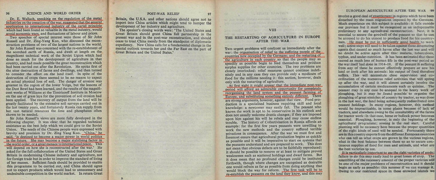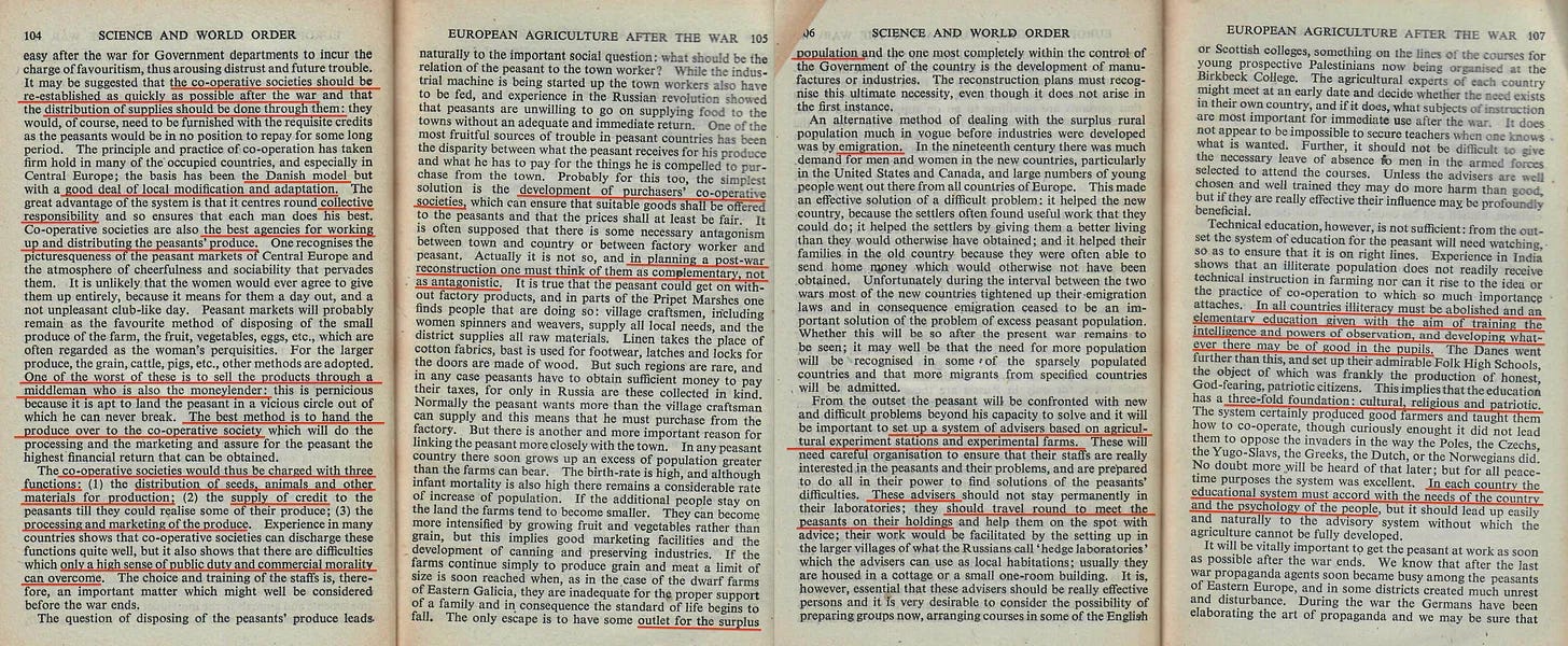 «Εκ πρώτης όψεως μπορεί να φαίνεται ότι η άμεση μεταπολεμική περίοδος θα προσφέρει μια θαυμάσια ευκαιρία για την πλήρη αναδιοργάνωση του συστήματος γης και της αγροτικής γεωργίας της Ευρώπης και την αντικατάσταση από κάτι εντελώς διαφορετικό».