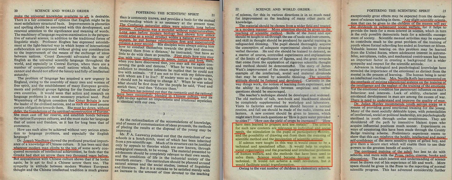 Παρεμπιπτόντως, ο Needham ήταν ένθερμος μαρξιστής και ήταν αυτός που πίεσε για την ένταξη της επιστήμης στην εντολή της UNESCO.