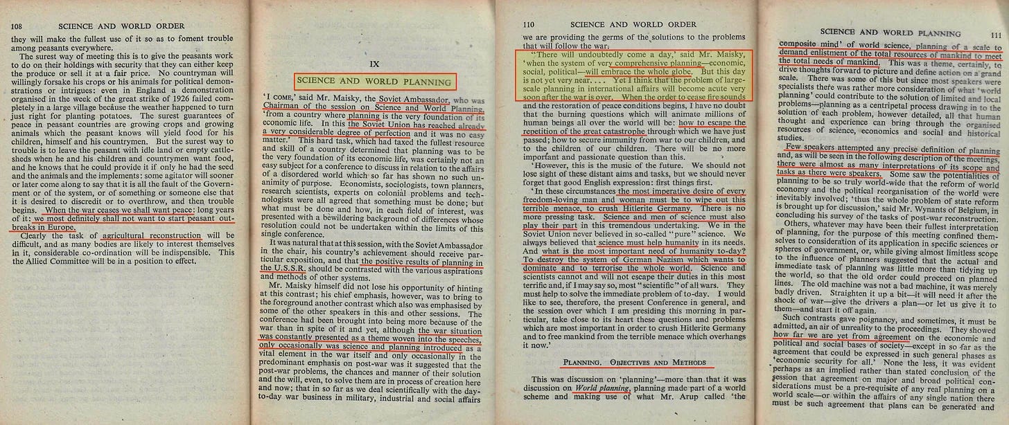 « Θα έρθει αναμφίβολα μια μέρα , είπε ο κ. Maisky, όταν το σύστημα του πολύ ολοκληρωμένου σχεδιασμού - οικονομικού, κοινωνικού, πολιτικού - θα αγκαλιάσει ολόκληρο τον πλανήτη».