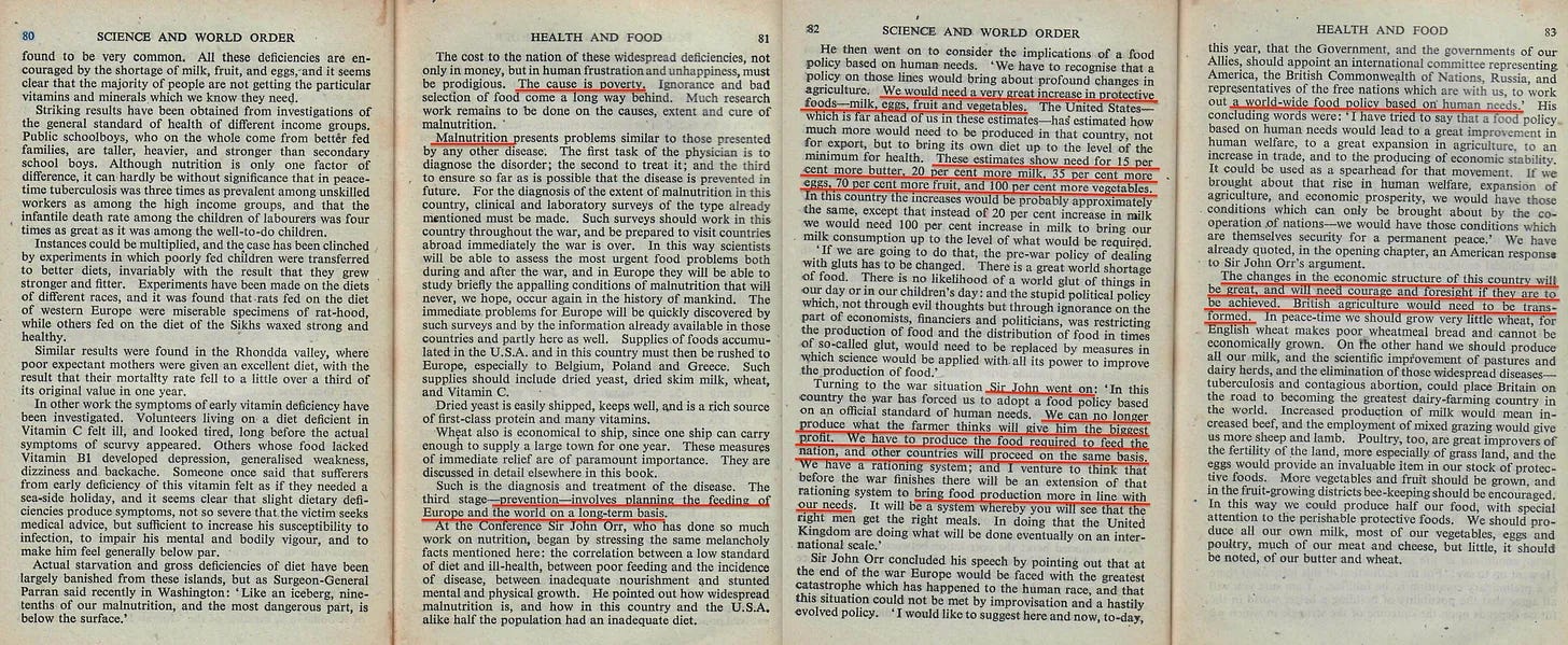 «Η παραγωγή θα πρέπει να σχεδιαστεί και θα πρέπει να εισαχθούν μεγάλες αλλαγές . Σε ορισμένες χώρες θα έπρεπε να αλλάξει ολόκληρο το σύστημα ιδιοκτησίας της γης , σε άλλες η παραγωγή θα έπρεπε να αυξηθεί σημαντικά».