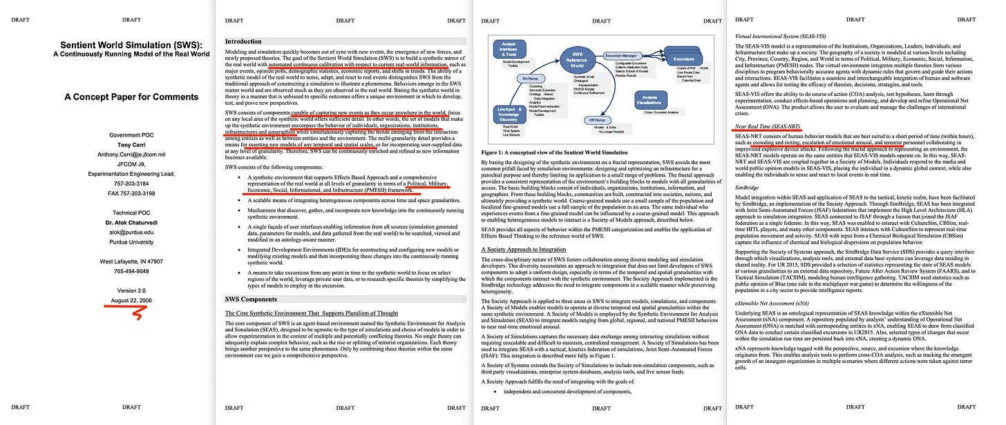«Ο στόχος του (SWS) είναι να δημιουργήσει έναν συνθετικό καθρέφτη του πραγματικού κόσμου με αυτοματοποιημένη συνεχή βαθμονόμηση σε σχέση με τις τρέχουσες πληροφορίες του πραγματικού κόσμου, όπως σημαντικά γεγονότα, δημοσκοπήσεις, δημογραφικές στατιστικές, οικονομικές εκθέσεις και αλλαγές στις τάσεις».