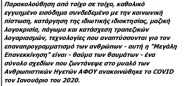 Η ανάγκη για μια Επανεκκίνηση δεν απορρέει από τον COVID. Η ψεύτικη πανδημία εξαπολύθηκε ΓΙΑ ΝΑ μπορέσει να ξεκινήσει μια Επανεκκίνηση.