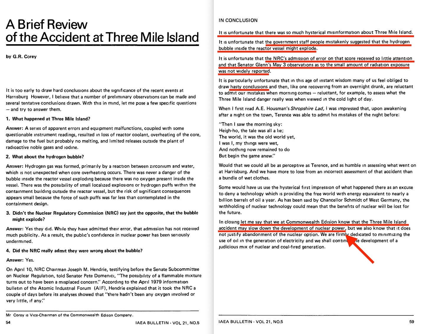 Και όταν εξετάζετε πιο προσεκτικά το περιστατικό στο Three Mile Island [16]... υπάρχουν αντιπαραθέσεις, και η οργάνωση με τίτλο «Ένωση Ανήσυχων Επιστημόνων» φαίνεται να κάνει πολλούς κύκλους [17].