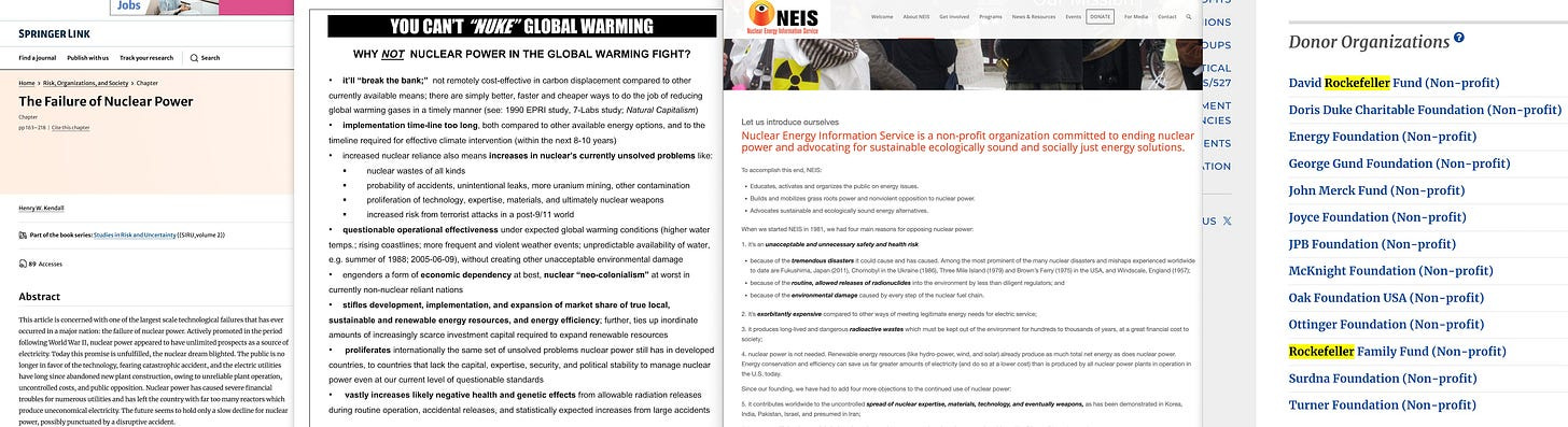 Και έτσι πολλές αμφισβητήσιμες «οργανώσεις βάσης» ξεκίνησαν γύρω από το περιστατικό του Three Mile Island, όλες άκρως επιφυλακτικές απέναντι στην πυρηνική ενέργεια, και συνεισέφεραν το ένα άρθρο [19] μετά το άλλο [20] , με ένα συγκεκριμένο [21] που γράφτηκε από τον ιδρυτή της UCS, όπου η εν λόγω UCS ισχυριζόταν ότι ήταν «υπέρ»... ωστόσο αυτές είχαν συνήθως γνωστές πηγές χρηματοδότησης.