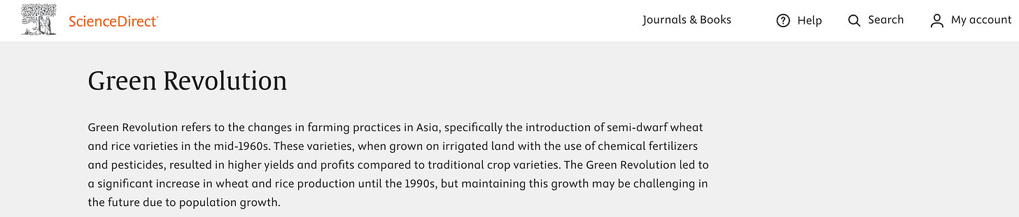 ... και αυτές οι μέθοδοι καλλιέργειας υιοθετούνται τώρα όλο και περισσότερο στις χώρες του 3ου κόσμου. Αυτό, φυσικά, αναφέρεται έμμεσα στην Πράσινη Επανάσταση [6] , η οποία είδε μια έκρηξη στις αποδόσεις, βγάζοντας πολλούς, πολλούς από τη φτώχεια.
