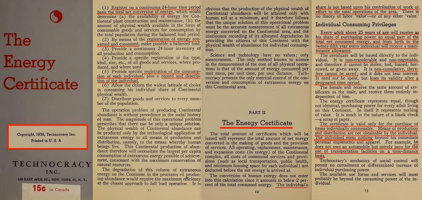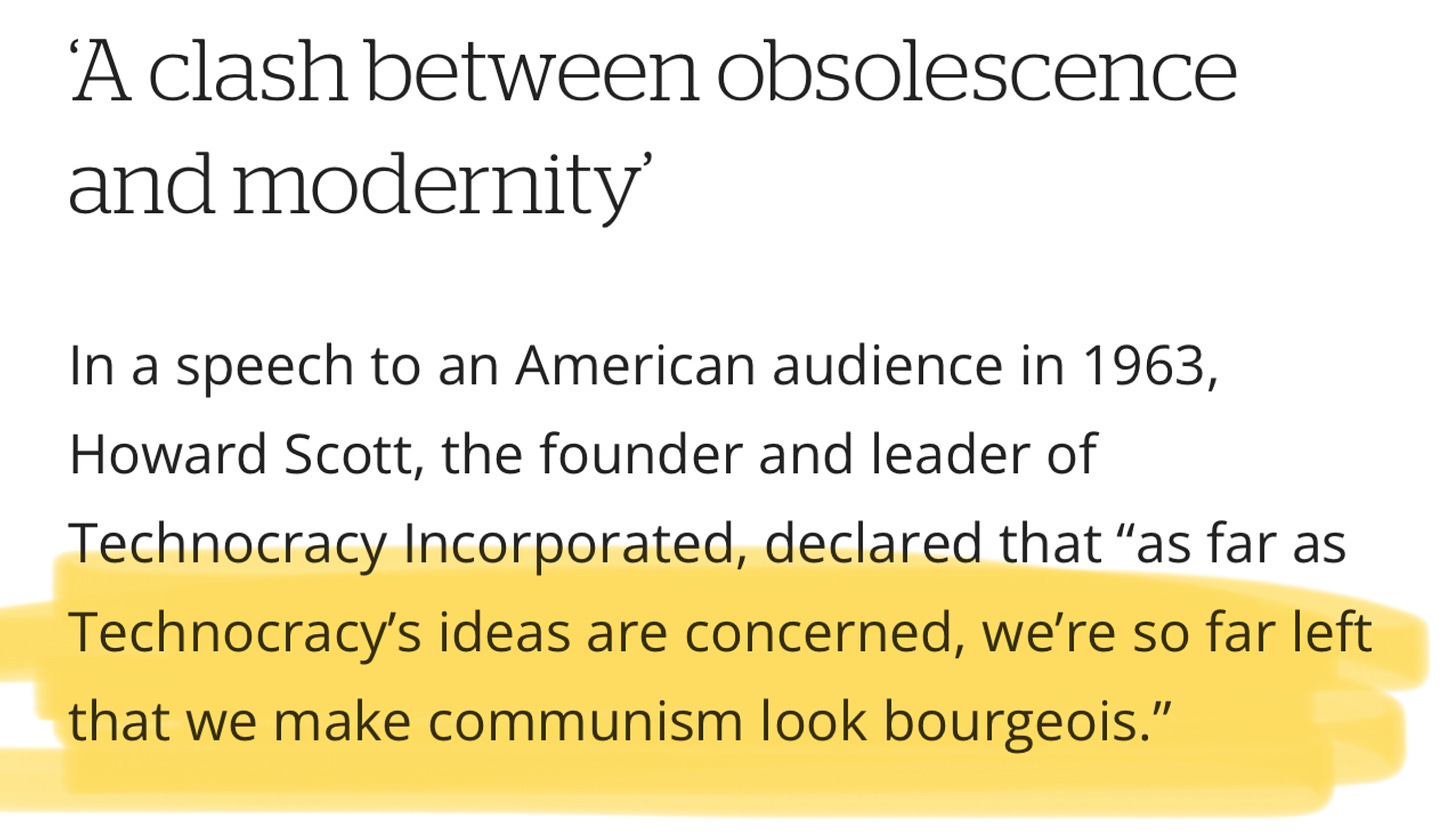 Και αν βρείτε την πρωταρχική τους έκδοση, το «Technocracy Study Course» [11], θα διαπιστώσετε ότι οι δύο έννοιες παρουσιάζουν πολύ, πολύ παρόμοια περιγράμματα της κοινωνίας... αλλά με το έγγραφο της Technocracy, Inc να έχει συνταχθεί το 1936!