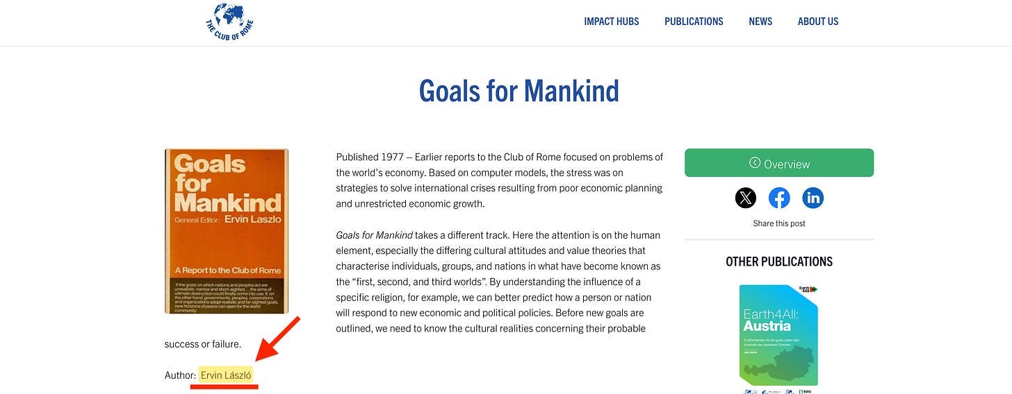 Και ο Laszlo, ο οποίος κινείται στο χώρο του σκόπιμου και του κανονιστικού (μεταφράζοντας το νόημα σε ηθική), μας λέει... ακριβώς αυτό για το οποίο μας ενημέρωσε η Λέσχη της Ρώμης το 1991. Πόσο τυχαίο, δεδομένου ότι το 1977 το βιβλίο του με τίτλο «Στόχοι για την Ανθρωπότητα» [8] εκδόθηκε από... ναι, τη Λέσχη της Ρώμης.