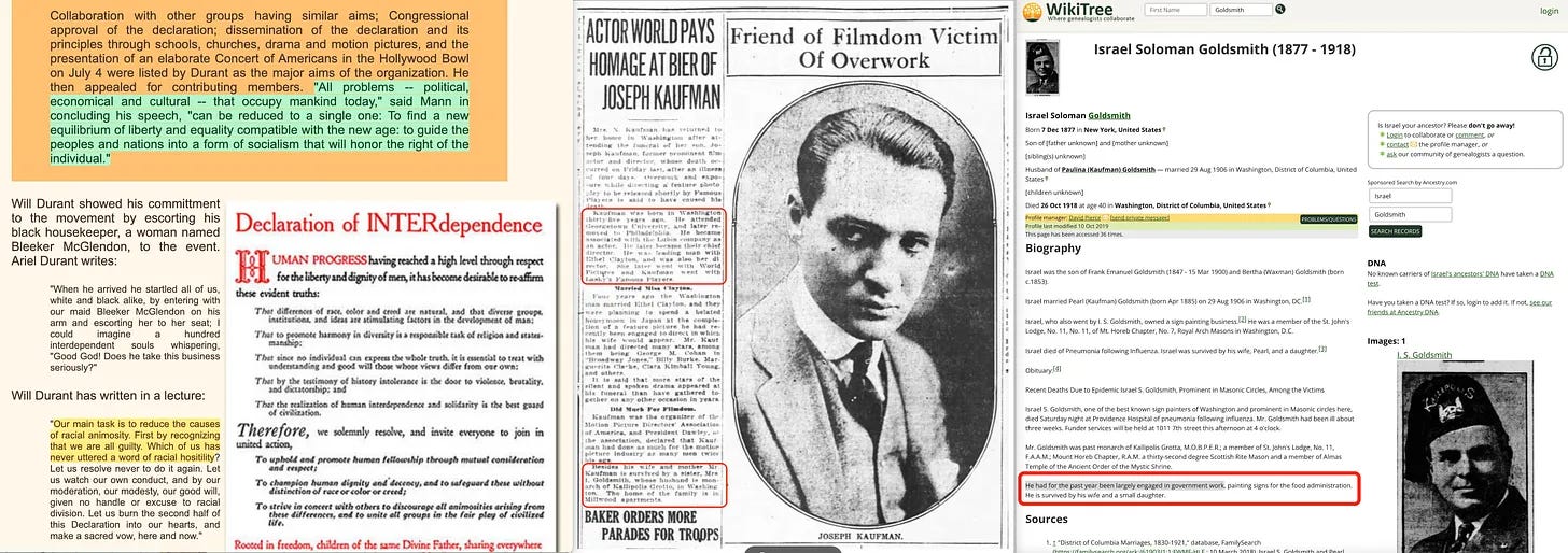 Όταν ο Joseph Kaufman πέθανε από την γρίπη του 1918, άφησε πίσω του μια αδελφή... παντρεμένη με τον Israel Goldsmith - τον Μονάρχη του Kallipolis Grotto στην Ουάσιγκτον DC13, που υποτίθεται ότι ήταν ένα επιρροή κεφάλαιο της εποχής, όπου «Kallipolis» είναι ένας όρος που χρησιμοποίησε ο Πλάτωνας στην Πολιτεία για να περιγράψει το όραμά του για μια ιδανική πόλη-κράτος που κυβερνάται από φιλόσοφους-βασιλιάδες [14].