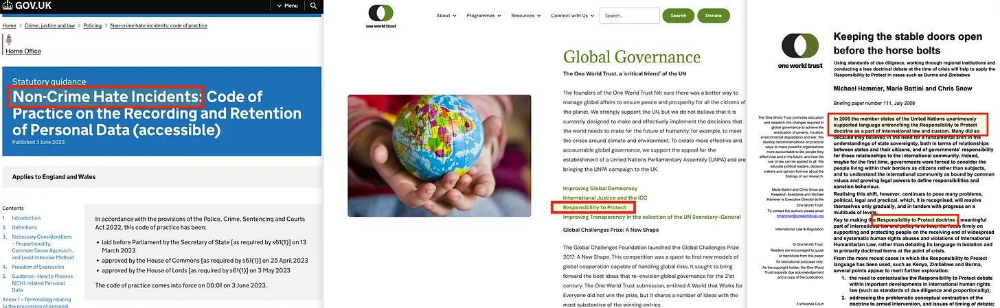 Αυτό θα ήταν η «Ευθύνη της Προστασίας» [22 ,23], την οποία θα επιδιώξουν να εφαρμόσουν σε περιπτώσεις «οικολογικής γενοκτονίας» (πιθανώς «διεθνών μη εγκληματικών περιστατικών μίσους» [24] σύντομα).