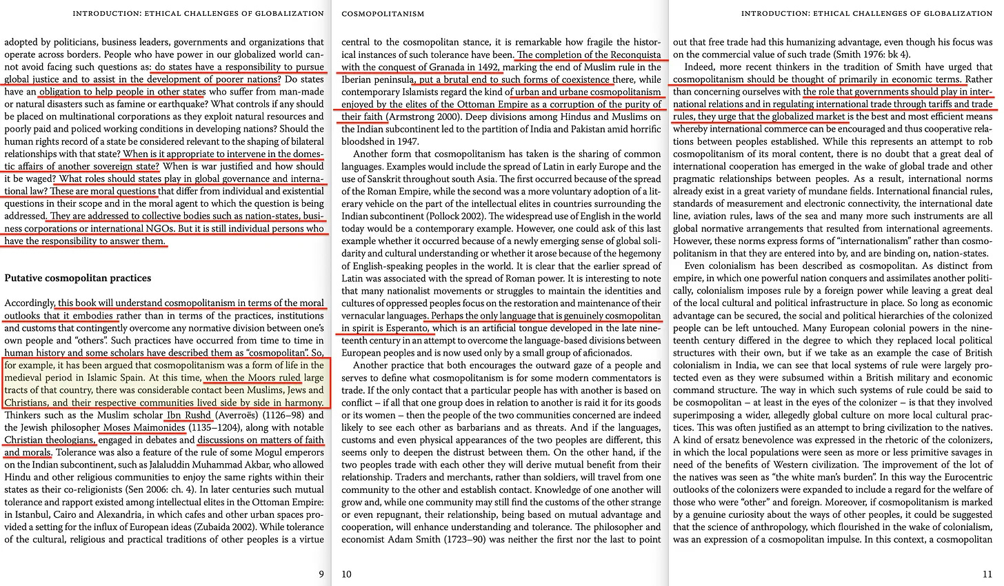 «Συνεπώς, το παρόν βιβλίο θα εξετάσει τον κοσμοπολιτισμό από την άποψη των ηθικών αντιλήψεων που ενσωματώνει...»