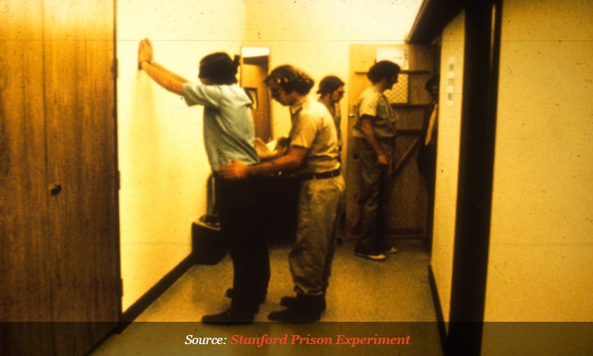 Η πλήρης ιστορία αυτού του πειράματος είναι συναρπαστική, αλλά η σύντομη εκδοχή είναι ότι σε ελάχιστο χρόνο οι φύλακες βρήκαν κάθε είδους τρόπους να πειράζουν και να τιμωρούν τους κρατούμενους, και οι κρατούμενοι επιχείρησαν να εξεγερθούν για να κατασταλούν και τελικά να οδηγηθούν σε αποσυρμένη, συναισθηματικά ασταθή συμπεριφορά.