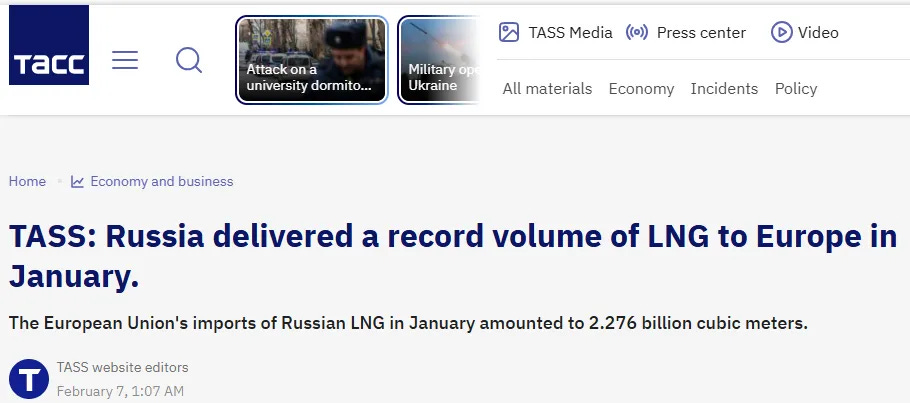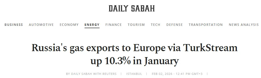 Λιγότερο από 24 ώρες αφότου δημοσίευσα αυτό το πολύ σημαντικό ειδικό στρατιωτικό μάθημα, τα ρωσικά κρατικά μέσα ενημέρωσης ανέφεραν (στα ρωσικά και στα αγγλικά) ότι η Gazprom είχε «παραδώσει» ποσότητες φυσικού αερίου ρεκόρ στην Ευρωπαϊκή Ένωση μέσω της Τουρκίας του κράτους-μέλους του ΝΑΤΟ τον Ιανουάριο: