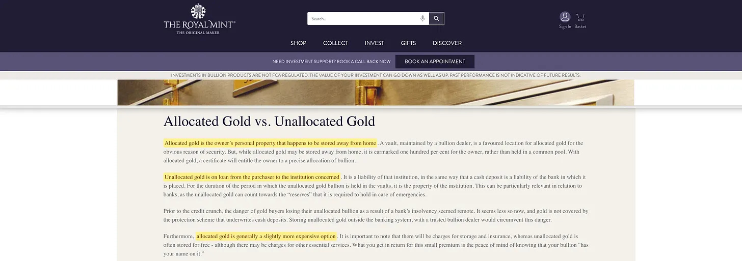 Τα κατανεμημένα πιστοποιητικά αντιστοιχούν σε μια συγκεκριμένη ποσότητα χρυσού που είναι φυσικά απομονωμένη σε θησαυροφυλάκιο.