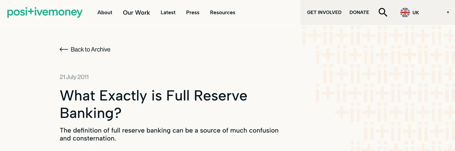Θετικό χρήμα: Από το τραπεζικό σύστημα μερικού αποθεματικού στο 100% κρατικά καθορισμένου χρηματικού αποθέματος