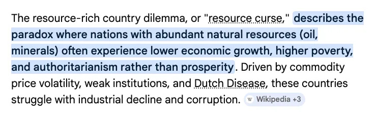 Χθες, έγραψα για το πώς το πετρέλαιο και το φυσικό αέριο κατέληξαν να καταστρέψουν την ΕΣΣΔ, επειδή έβαλαν τη Ρωσία υπό την κυριαρχία μιας «βελόνας» όπως ο ναρκομανής. Μετά από αυτό το σημείο, η ΕΣΣΔ έπρεπε να συνεχίσει να πουλάει στη Δύση, για να μην οδηγηθεί σε πολιτική αστάθεια. Η άνοδος μιας προσοδοφόρας βιομηχανίας για εξαγωγές επέτρεψε την άνοδο μιας KGB και μιας ολιγαρχίας που δεν λογοδοτούσε σε κανέναν στην κυβέρνηση. Αυτό είναι ένα κλασικό δίλημμα μιας χώρας πλούσιας σε πόρους.
