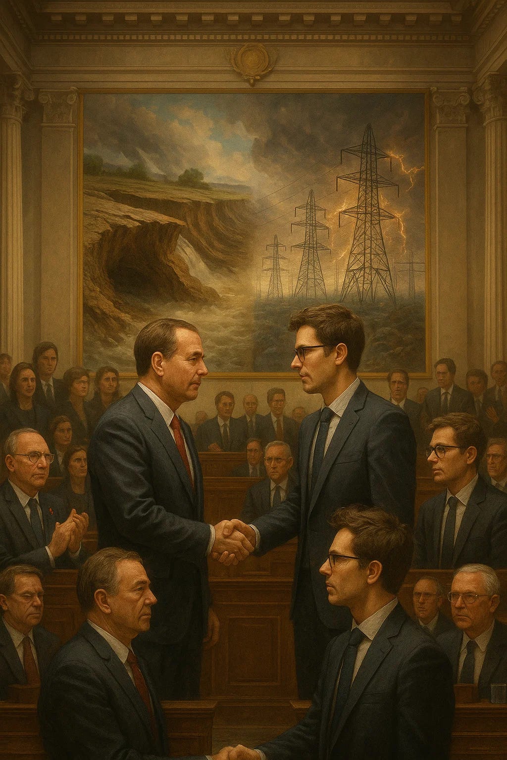 Κυριαρχία της αφήγησης: Οι πολιτικές παρουσιάζουν την επέκταση ως «στρατηγική ψηφιακής οικονομίας», καλύπτοντας την οικολογική κατάρρευση.