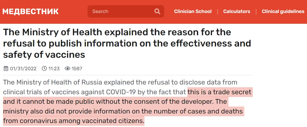 Αυτός είναι ο λόγος για τον οποίο το ρωσικό υπουργείο Υγείας διαβάθμισε τα αποτελέσματα των κλινικών δοκιμών του Sputnik V, ισχυριζόμενο ότι τα δεδομένα αποτελούν "εμπορικό απόρρητο"; (Ίσως!)