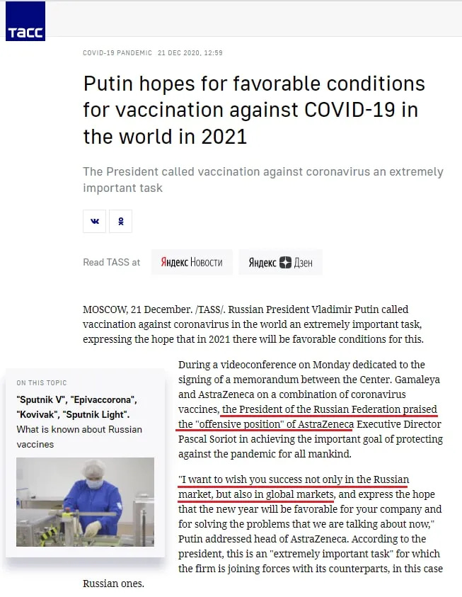 Αυτό δεν αποτελεί μεγάλη έκπληξη αν γνωρίζετε τη στενή συνεργασία μεταξύ της ρωσικής κυβέρνησης και του βρετανοσουηδικού φαρμακευτικού κολοσσού.
