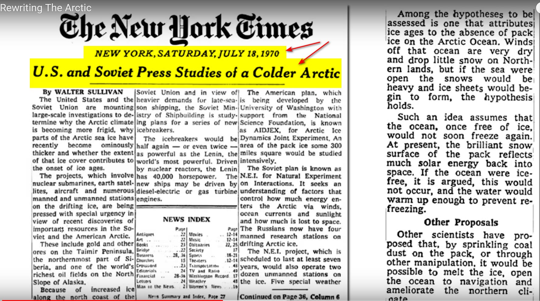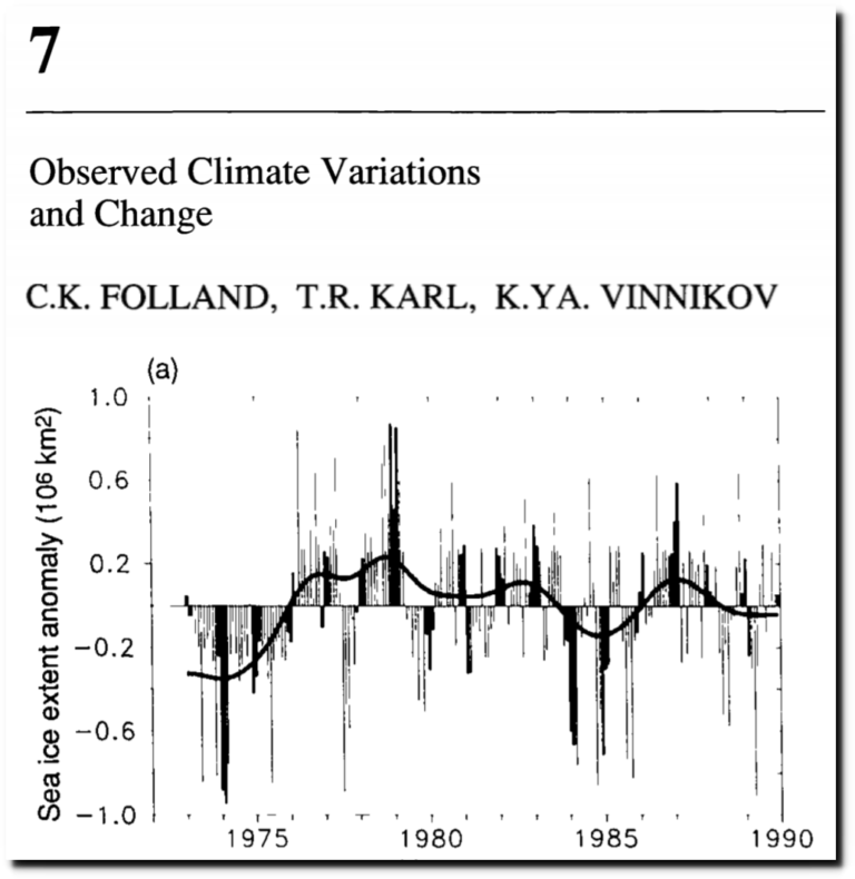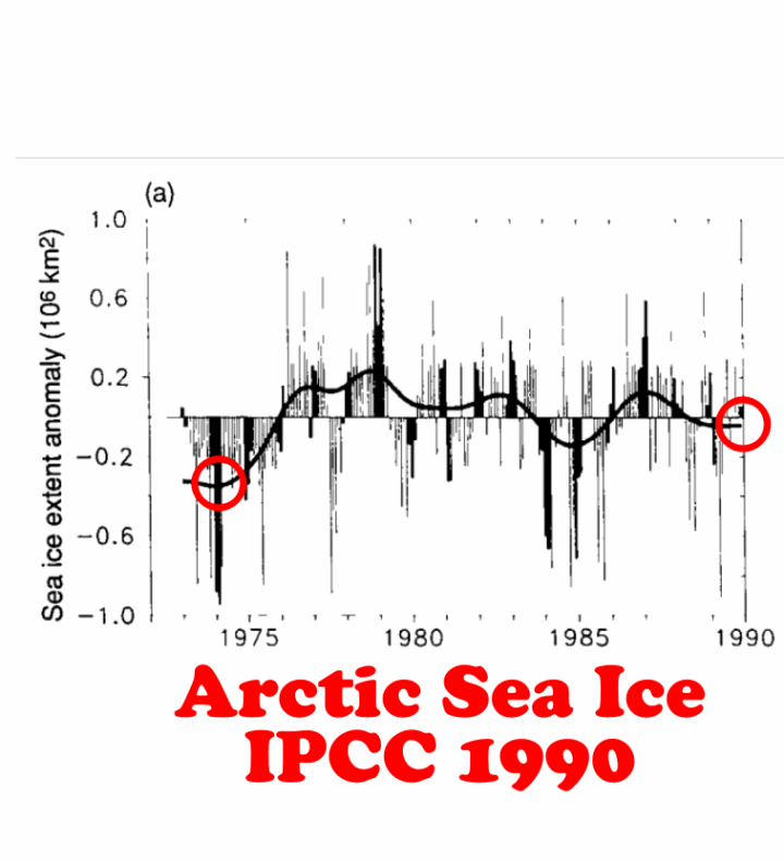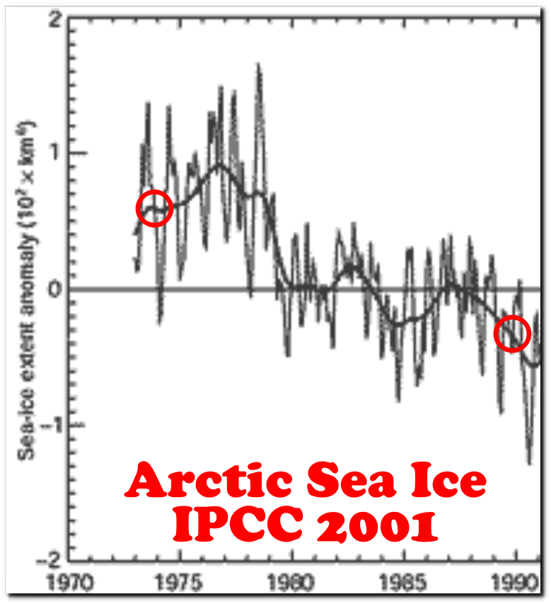 Μεταξύ του 1990 και 2001, η IPCC ("Διακυβερνητική Επιτροπή για την Κλιματική Αλλαγή" του ΟΗΕ) αναδιατύπωσε το δορυφορικό αρχείο των θαλάσσιων πάγων της Αρκτικής και άλλαξε την τάση αύξησης των πάγων σε μείωση των πάγων.
