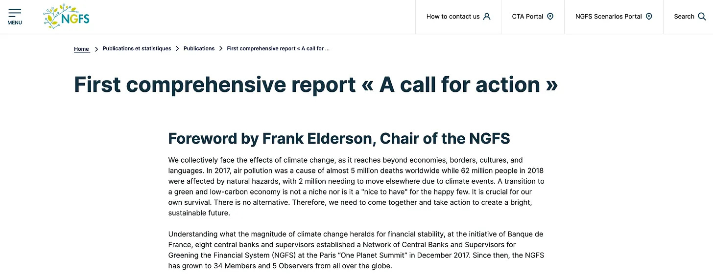Αυτές οι εμβληματικές εκθέσεις δεν εμφανίστηκαν μεμονωμένα — αντιπροσωπεύουν το αποκορύφωμα ενός συστηματικού θεσμικού συντονισμού που αποκαλύπτει την πραγματική έκταση αυτής της μεταμόρφωσης. Η «Πρόσκληση για Δράση» [40] του Δικτύου για την Οικολογικοποίηση του Χρηματοπιστωτικού Συστήματος (Απρίλιος 2019) ήταν επαναστατική, καθώς ανέβασε επίσημα το ζήτημα του κλίματος από περιβαλλοντικό πρόβλημα σε συστημικό χρηματοπιστωτικό κίνδυνο, παρέχοντας σε 34 μεγάλες κεντρικές τράπεζες τη δικαιολογία να επεκτείνουν τις αρμοδιότητές τους σε μια ολοκληρωμένη κοινωνική μηχανική.