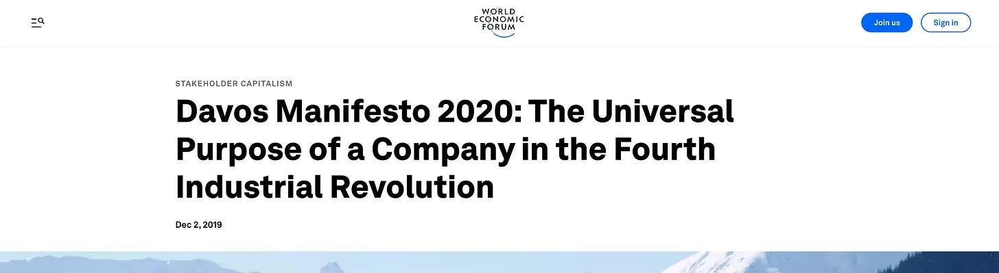 Το «Μανιφέστο του Νταβός 2020» [42] του Παγκόσμιου Οικονομικού Φόρουμ ενσωμάτωσε αυτή τη λογική στην εταιρική διακυβέρνηση μέσω δεικτών «καπιταλισμού των ενδιαφερομένων μερών» που μετατρέπουν κάθε μεγάλη εταιρεία σε διοικητικό όργανο της τάξης των ειδικών. Όταν τα δεδομένα ESG τροφοδοτούν άμεσα αλγοριθμικές επενδυτικές αποφάσεις, οι μηχανισμοί της αγοράς γίνονται εργαλεία επιβολής της τεχνοκρατικής κοινωνικής πολιτικής.