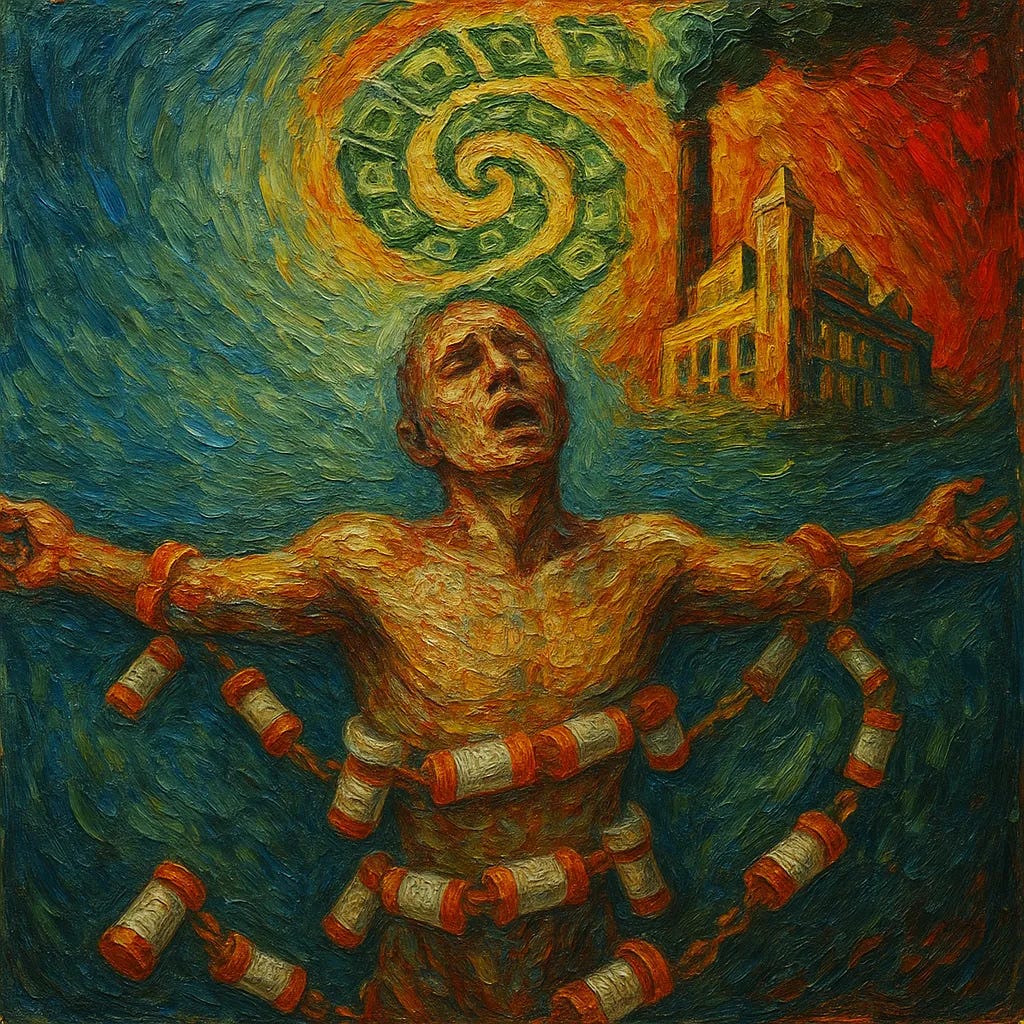 Αυτό το δοκίμιο διερευνά την έννοια της ιατρογενούς σκλαβιάς του Dr. Toby Rogers — τη συστηματική υποδούλωση πληθυσμών μέσω φαρμακευτικών βλαβών που δημιουργούν δια βίου εξάρτηση και εκμετάλλευση πλούτου. Βασιζόμενη στο πλαίσιο του ότι η δυτική αλλοπαθητική ιατρική έχει μετατραπεί σε μηχανισμό κλοπής πλούτου από τη μεσαία και την εργατική τάξη μέσω σκόπιμης βλάβης, η ανάλυση αυτή αποκαλύπτει πώς μια μεμονωμένη φαρμακευτική βλάβη μετατρέπεται σε ισόβια καταδίκη ιατρικής υποδούλωσης, στερώντας όχι μόνο από τα μεμονωμένα θύματα, αλλά και από ολόκληρες οικογένειες τον συσσωρευμένο πλούτο και το μελλοντικό δυναμικό τους.