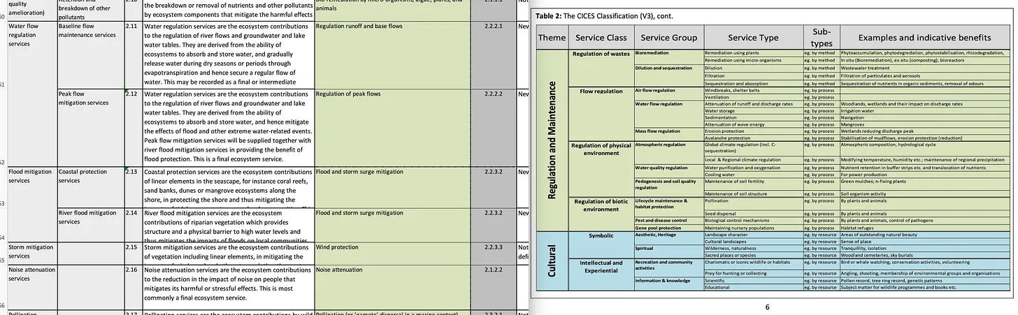 ... ειδικά λαμβάνοντας υπόψη ότι το CICES ήδη από το 2018 περιλάμβανε «τύπους υπηρεσιών» που αφορούσαν σαφώς υποκειμενικά θέματα....