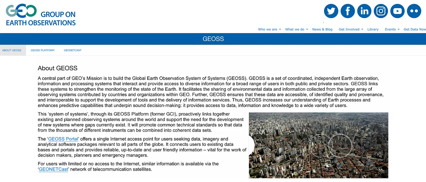 Σταδιακά, όμως, οι εκκλήσεις για ένα κοινό σύστημα έγιναν πιο έντονες και το 2005 δημιουργήθηκε το GEOSS, με βάση μια ιδέα που ξεκίνησε στο Γιοχάνεσμπουργκ το 2002.