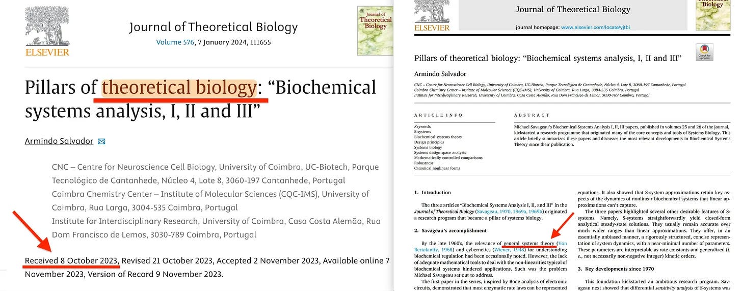 Και ναι, η θεωρητική βιολογία είναι πραγματικά κάτι [4], κάτι που αφορά τη Γενική Θεωρία Συστημάτων, στην πραγματικότητα. Επιδιώκει να περιγράψει μια ομάδα - ας πούμε - ανθρώπων σε έναν μεγάλο ψευδο-οργανισμό και, στη συνέχεια, να προσποιηθεί ότι ο εν λόγω οργανισμός είναι πραγματικός. Τουλάχιστον, θεωρητικά.
