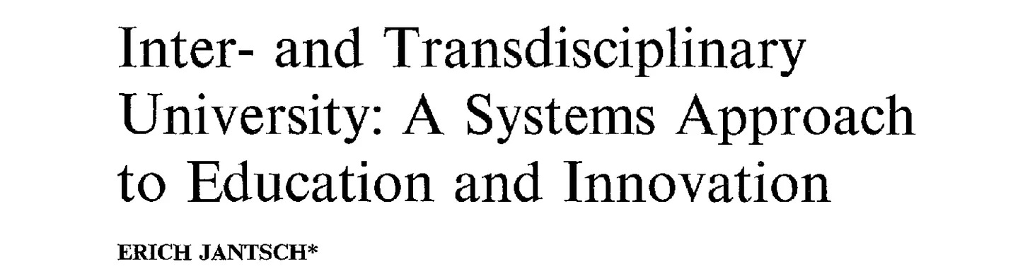 Γενικά, έχουμε να κάνουμε με ένα ιεραρχικό μοντέλο συστημάτων, όπου κάθε επίπεδο βασίζεται στα επίπεδα που βρίσκονται από κάτω. Και εδώ μπαίνει στο προσκήνιο το επόμενο ενδιαφέρον άρθρο. Inter- and Transdisciplinary University: A systems approach to education and innovation [5] (Διατμηματικό και διεπιστημονικό πανεπιστήμιο: Μια συστημική προσέγγιση στην εκπαίδευση και την καινοτομία) από το 1970, του Erich Jantsch.