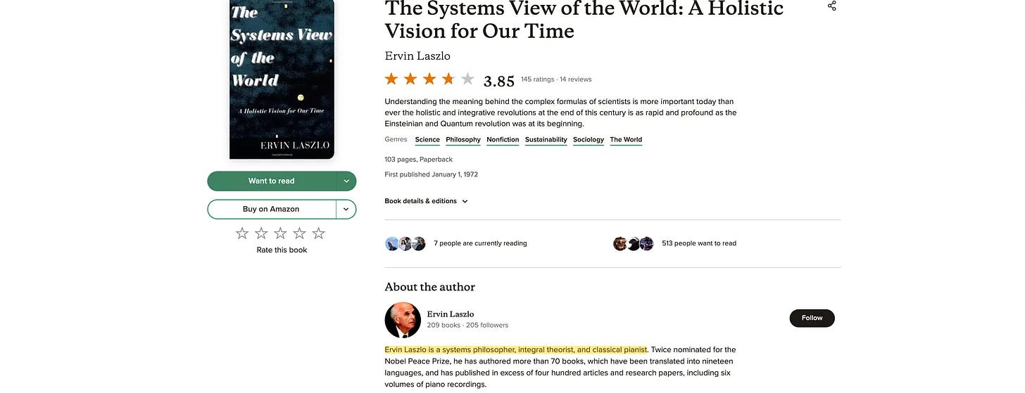 Ξέρω ότι όλα αυτά ακούγονται αρκετά περίεργα και όλα αντιπροσωπεύουν μια κάποια θόλωση των παραδοσιακών πεδίων, κάτι που ήταν προφανώς η πρόθεση από την αρχή. Αλλά για να δώσω ένα παράδειγμα, το επίπεδο σχεδιασμού συστημάτων είναι εκεί όπου ο γενικός θεωρητικός συστημάτων Ervin Laszlo έχει αφήσει το ολιστικό του στίγμα [6].