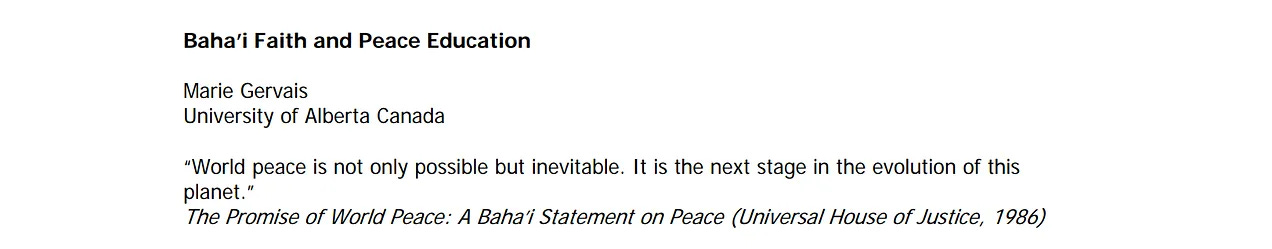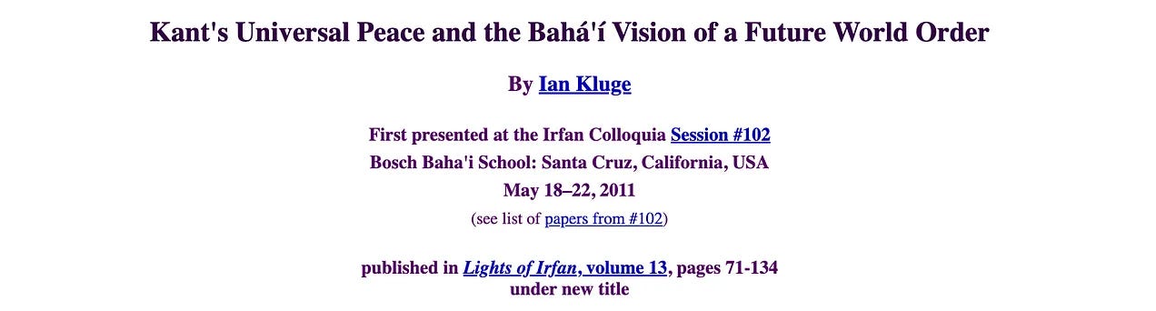 Με άλλα λόγια, η ειρήνη του Καντ είναι ένα ορθολογικό κατασκεύασμα, ενώ το όραμα του Bahá’í είναι ένα ηθικό-πνευματικό κατασκεύασμα.
