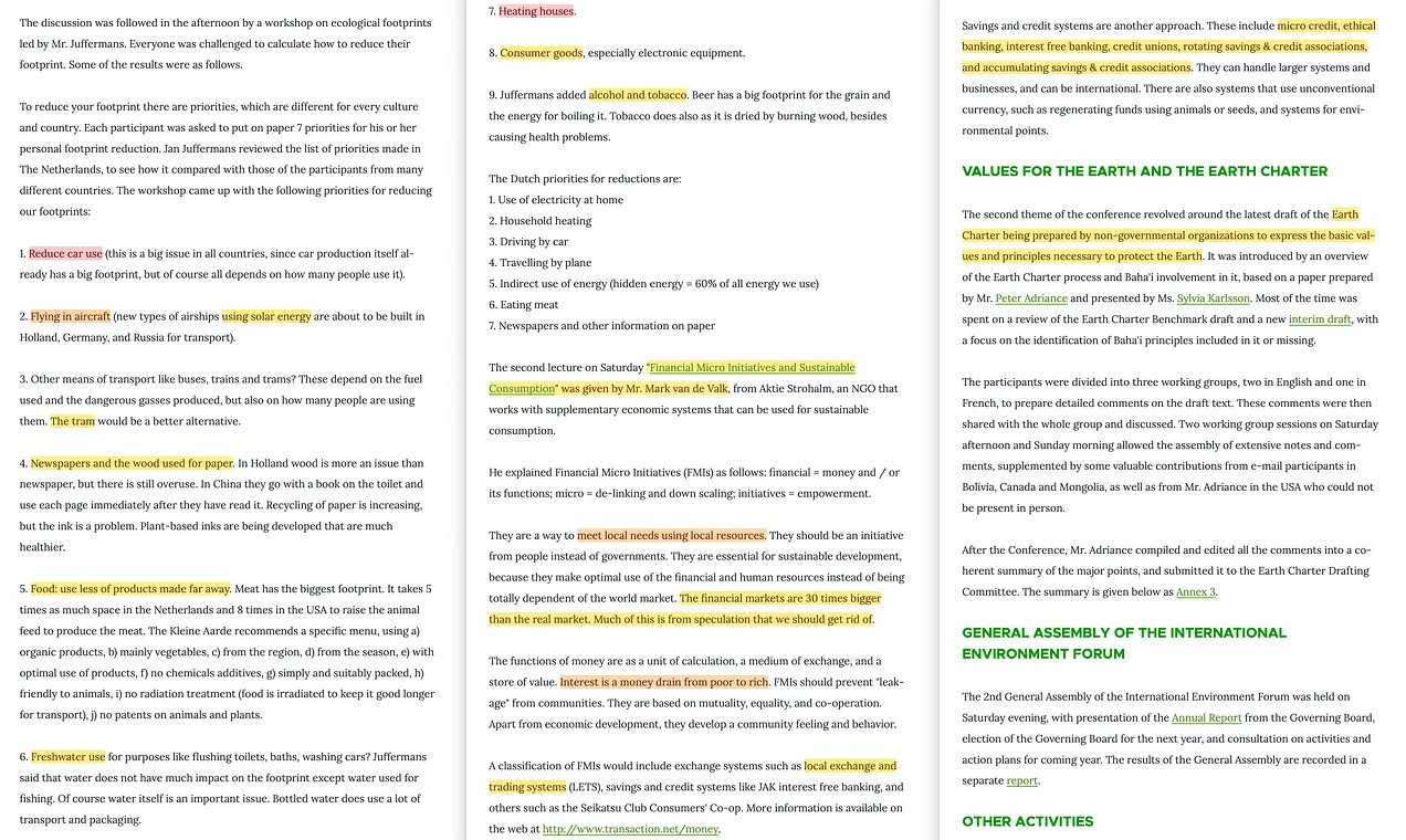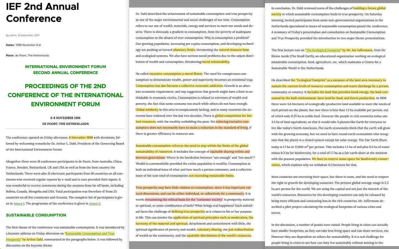 Η 2η Ετήσια Διάσκεψη [15] του Διεθνούς Φόρουμ Περιβάλλοντος («IEF») εδραίωσε περαιτέρω την ενσωμάτωση των αρχών του Bahá’í στην παγκόσμια διακυβέρνηση της βιωσιμότητας, ενισχύοντας την έμφαση στη βιώσιμη κατανάλωση, την παγκόσμια ισότητα και την ηθική ανακατανομή των πόρων. Η κεντρική ομιλία του Dr. Arthur Dahl με θέμα «Βιώσιμη κατανάλωση και αληθινή ευημερία» προσδιόρισε την υπερβολική κατανάλωση ως ηθική ασθένεια, τονίζοντας ότι η οικονομική ανάπτυξη που οδηγείται από τον εθισμό των καταναλωτών και τον ανταγωνισμό για τους περιορισμένους πόρους επιδεινώνει την παγκόσμια ανισότητα.